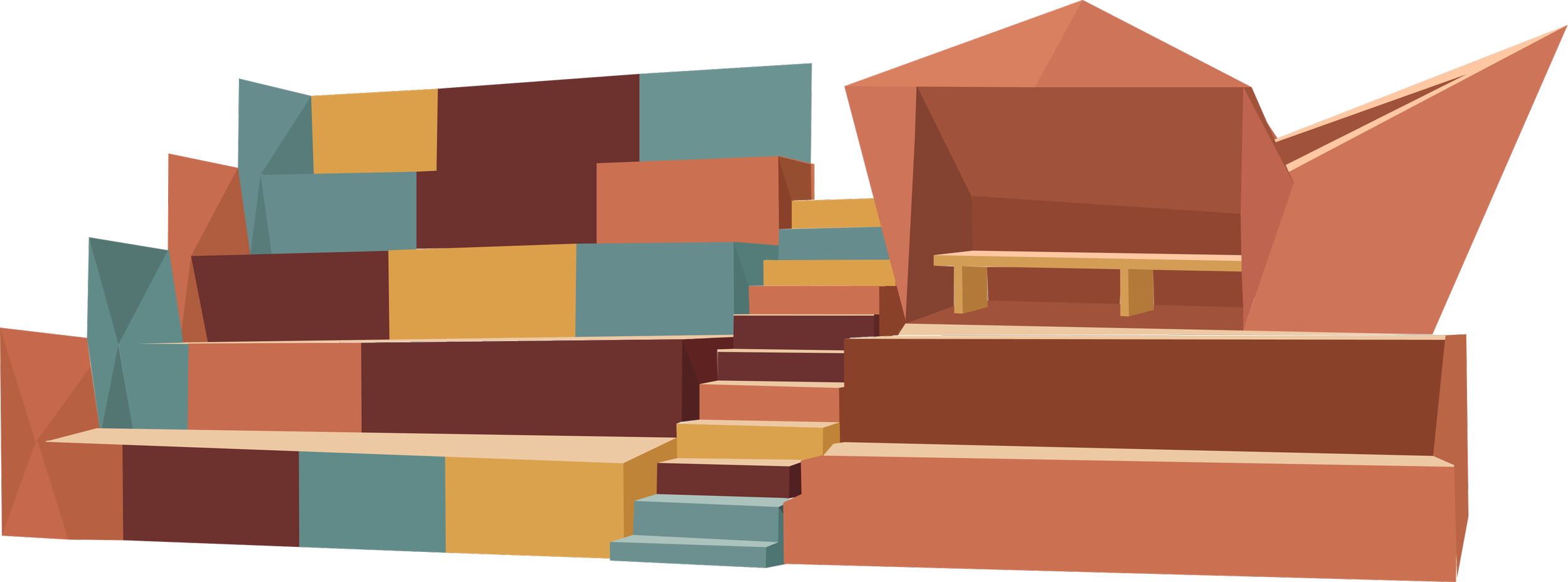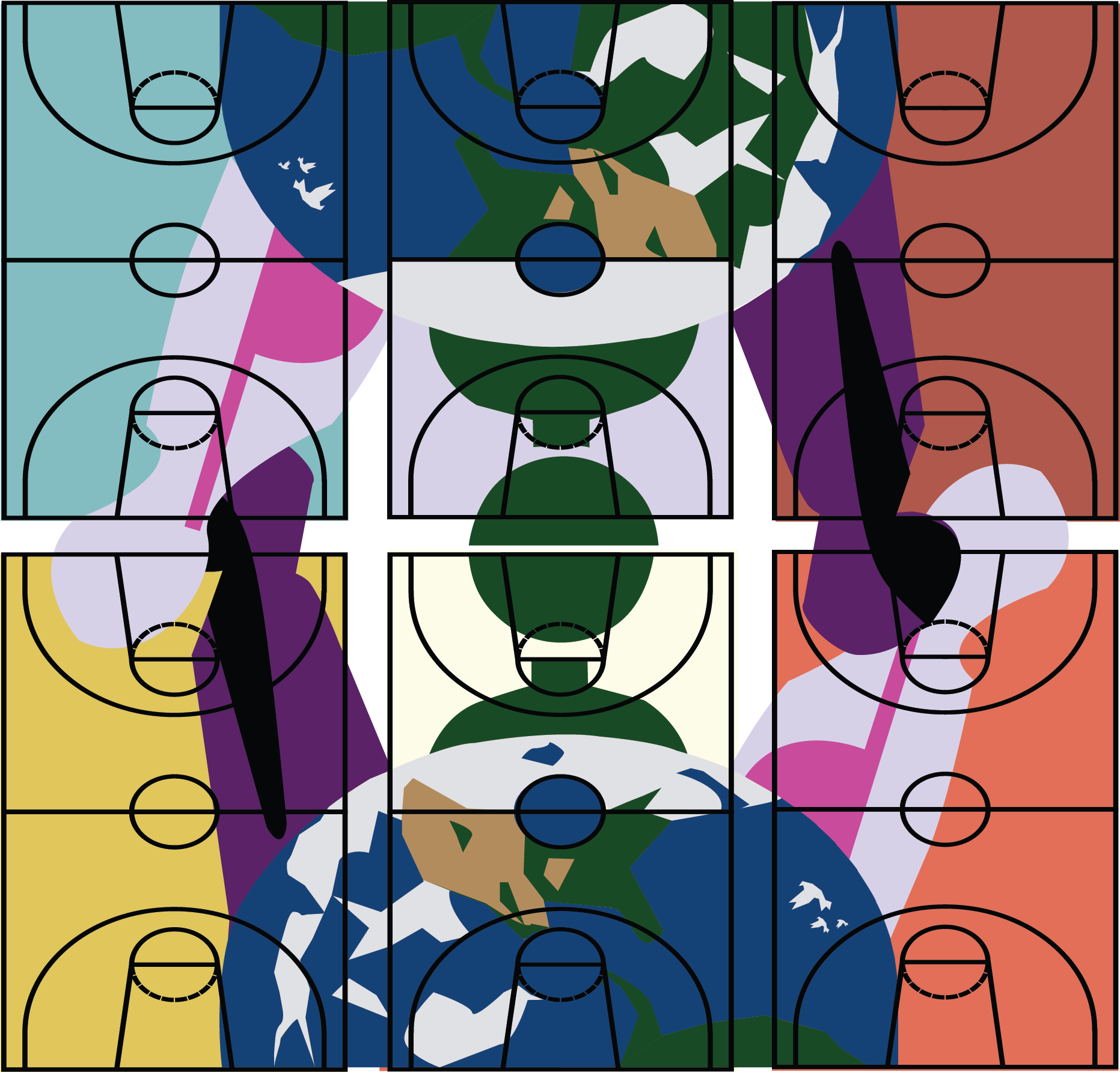 The courts combine both the abstract figures and the origami in one piece. Given that the main theme of this project is community, we wanted to make the courts resemble that. These figures are integrated throughout all six courts, overseeing our world. There is origami hidden in the courts, much like an iceberg. Each court is made to be a part of a bigger image.